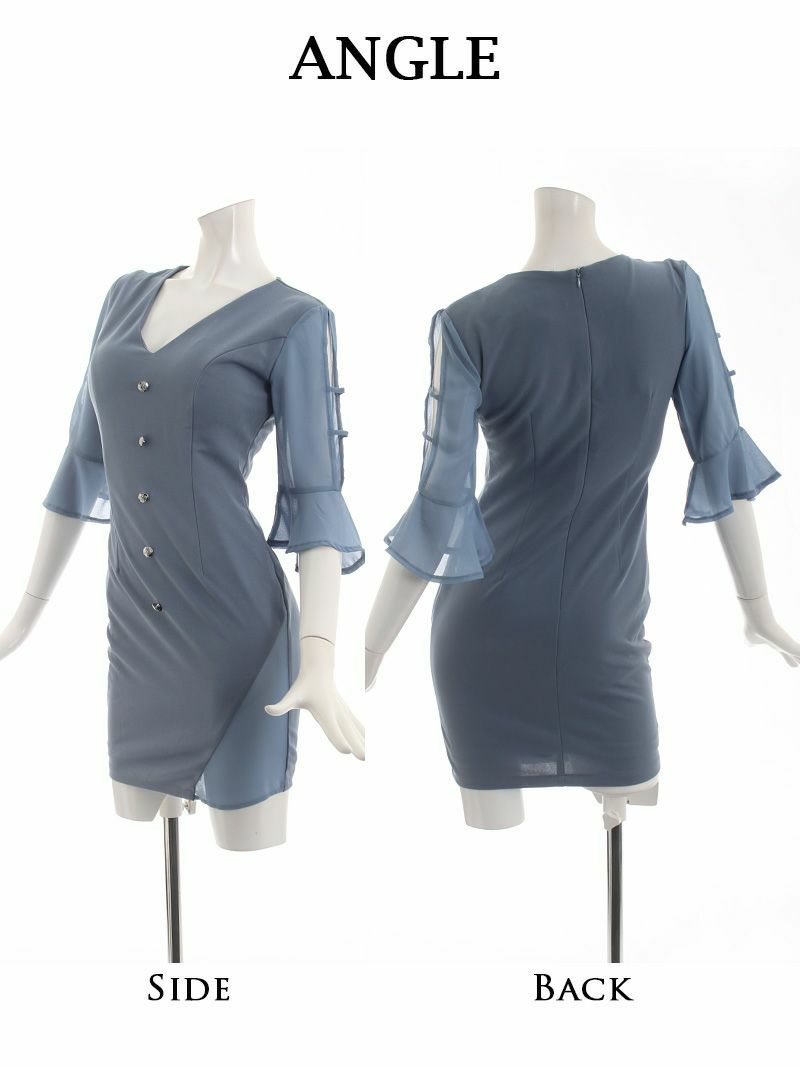 バストリボンが目を惹くデザイン シアー長袖バストリボン韓国風キャバワンピース【DAYS PIECE】(S/M/L/XL)(バーガンディ/ブルー)