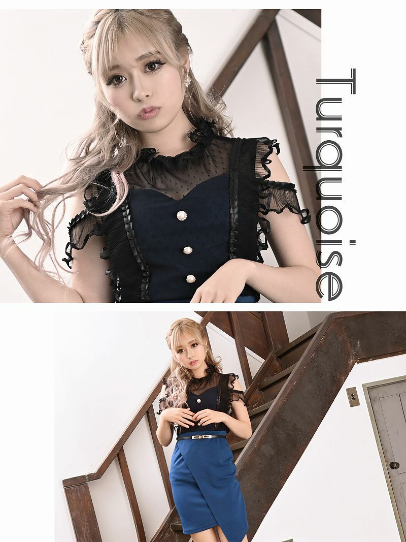 カラバリ豊富!! カシュクールウエストクロスキャミキャバワンピース みりちゃむ りあな あいみ 着用キャバクラドレス【Ryuyu】(S/M/L)(ワイン/マスタード/ターコイズ/バーガンディ/ブラック)