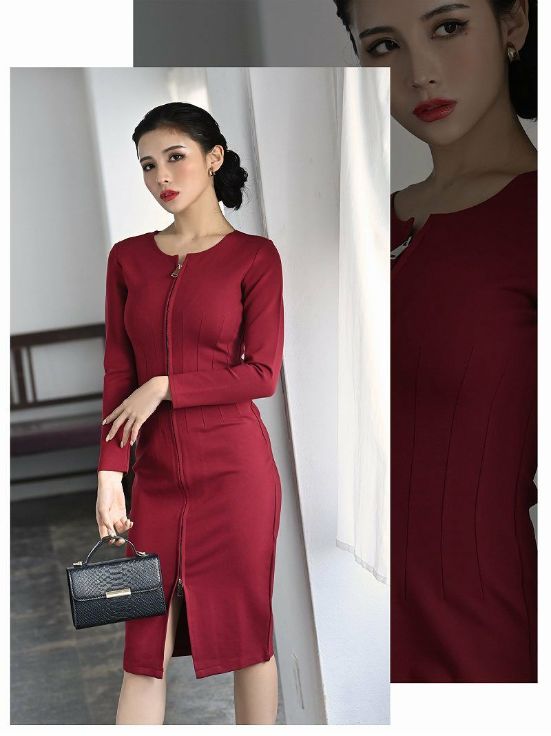 スタイルアップ効果抜群なワンピ ギャザー入りラメフロントクロス長袖韓国キャバワンピース【DAYS PIECE】(M/L)(レッド/ブルー/ブラック)