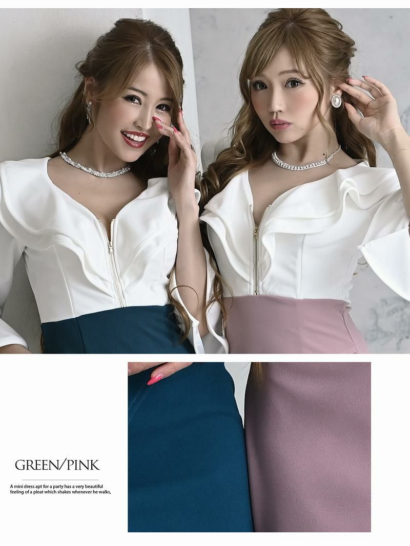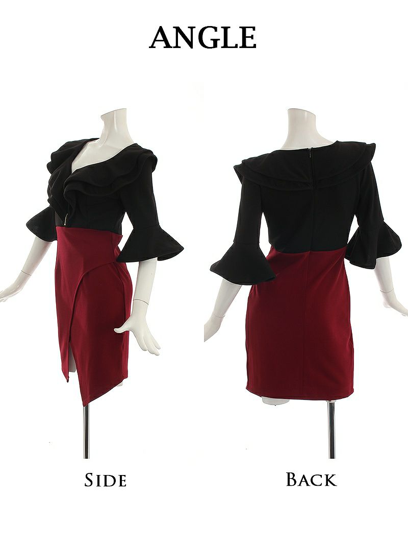 フリルとベルスリーブが魅力のバイカラーキャバドレス【RyuyuChick】