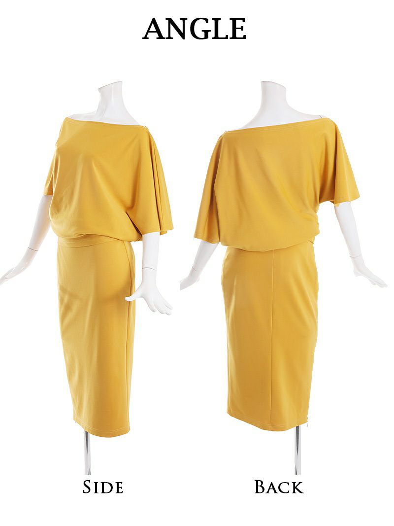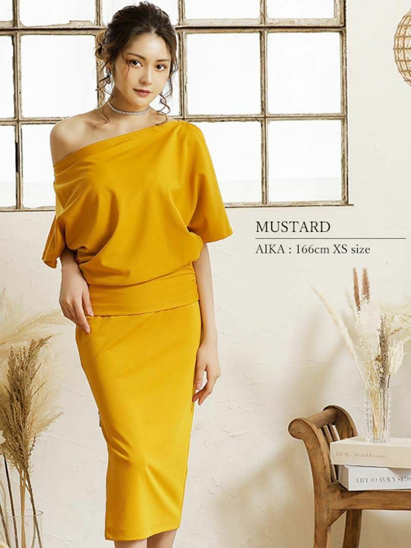 5. 【Veautt/ヴュート】オフショルダー膝丈ワンカラーキャバドレス(XS/S)(ホワイト/ブラック/マスタード)