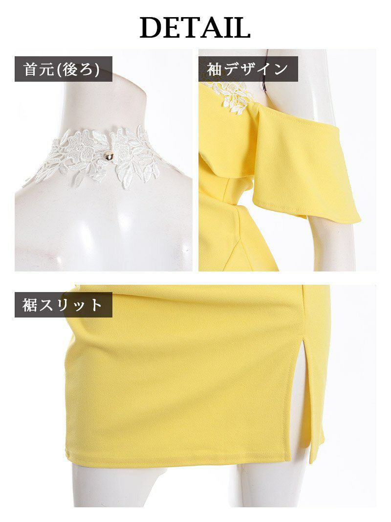 5. ホルターネックレースオフショルタイトキャバドレス きわ 着用 ミニドレス【Ryuyu】(S/M/L)(ミント/イエロー) ptpl