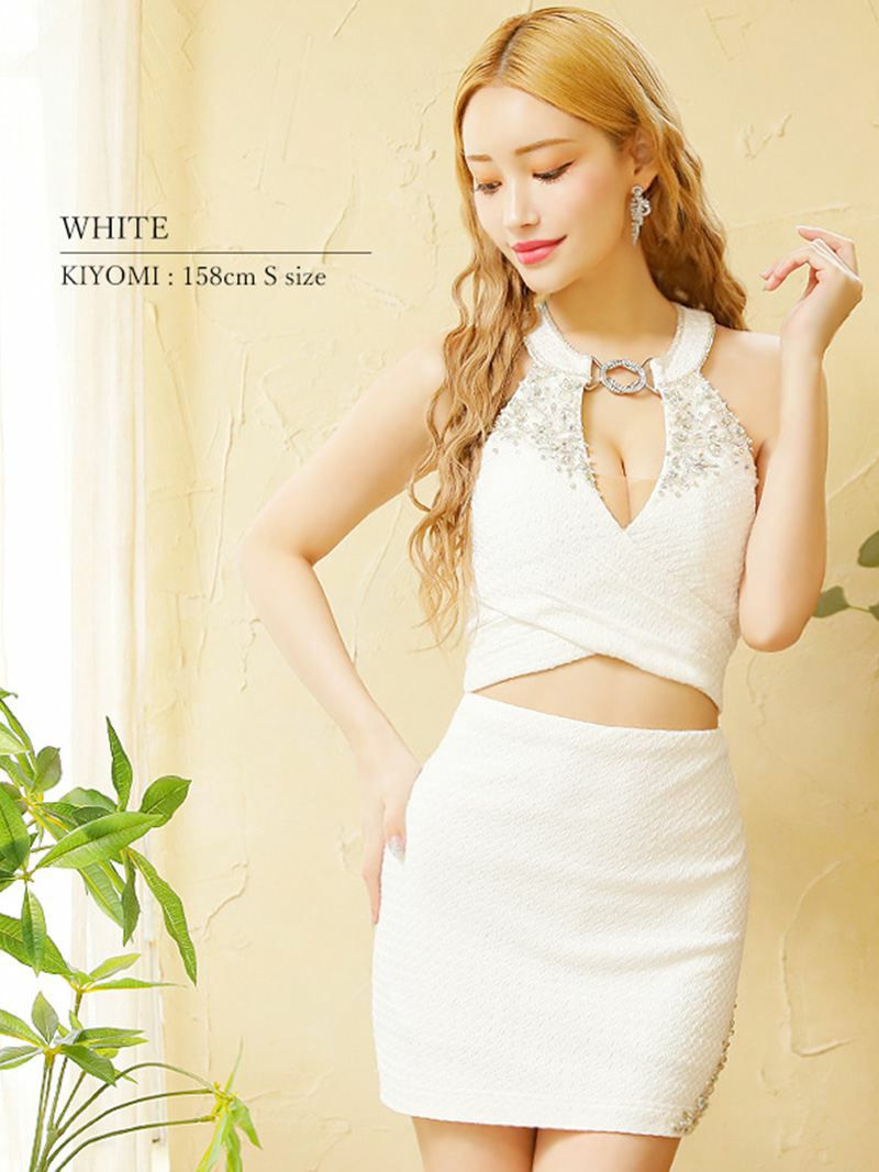 5. 【Angel R/エンジェルアール】バストビジュー谷間見せセパレートセットアップドレス(XS/S/M)(ホワイト/ミントグリーン/パープル/イエロー)