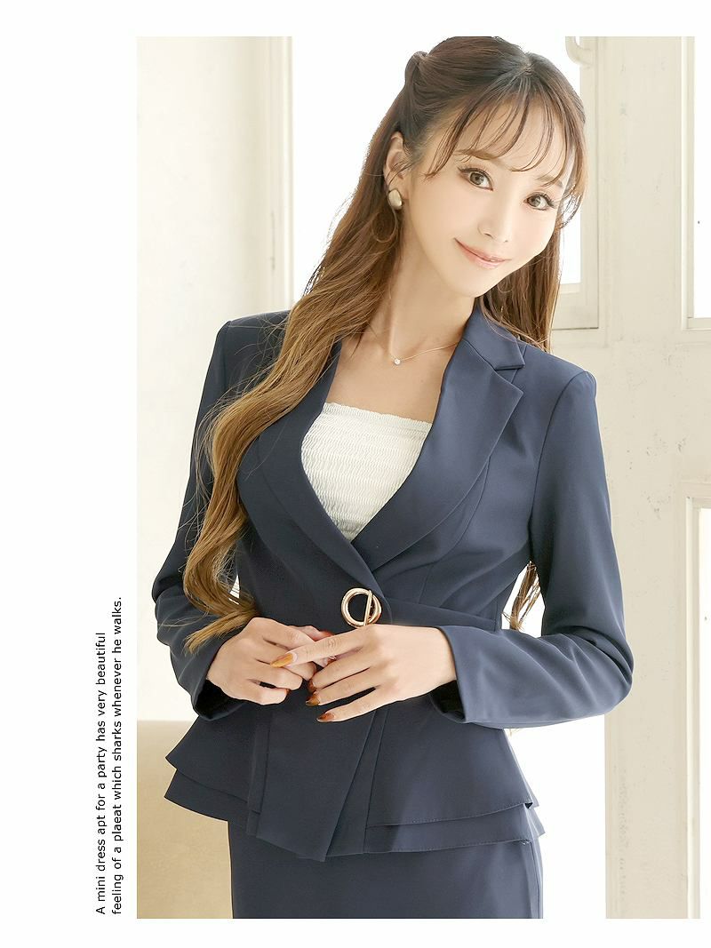 ワンランク上の上品さ! きちんと感と華やかさを両立した大人のセットアップ 洗練された大人デザイン♪ ジャケット&アシンメトリーフリルミニスカートセットアップキャバスーツ OEO【Ryuyu】(S/M/L/XL)(ブラック/ベージュ)