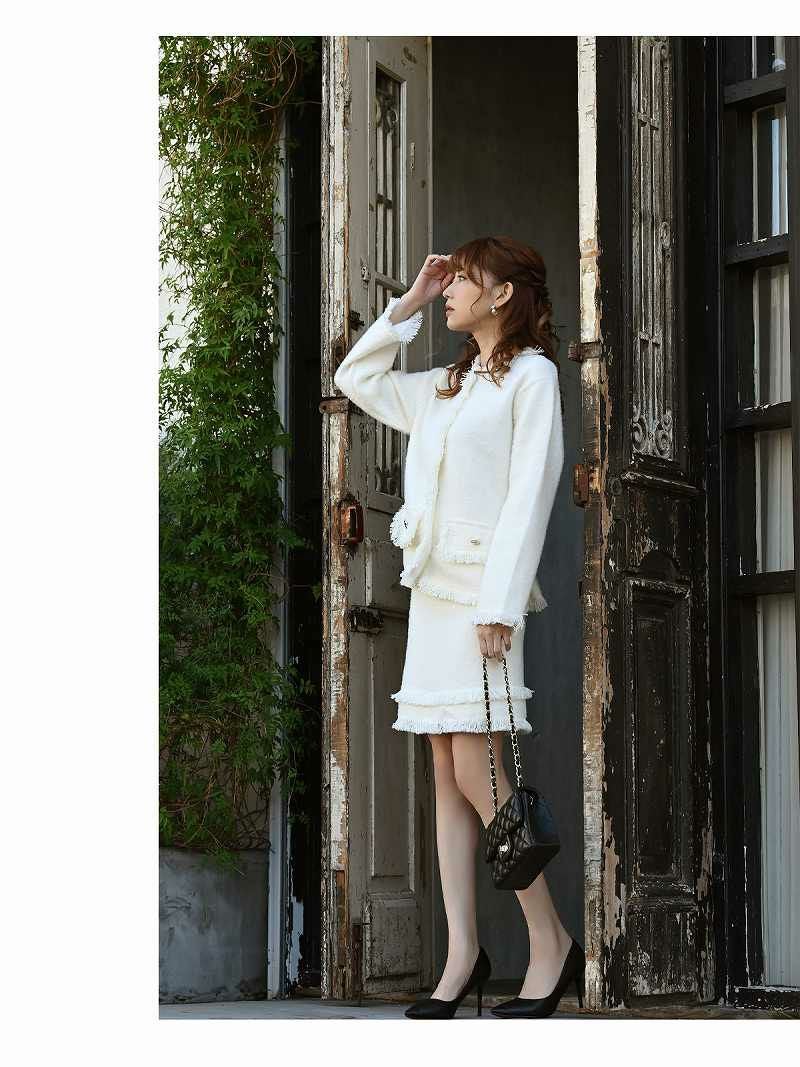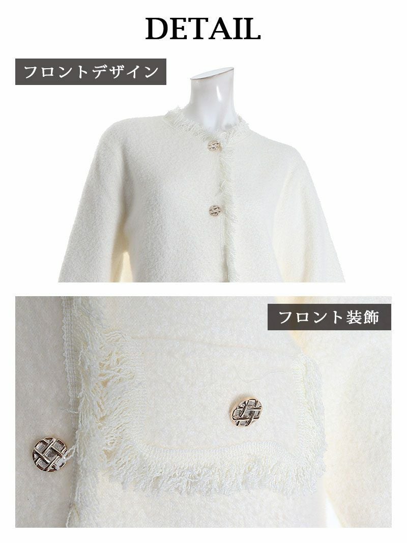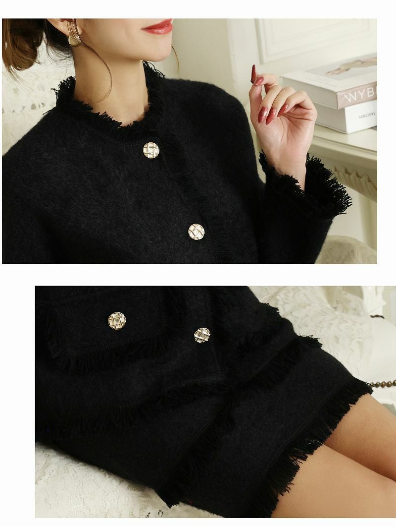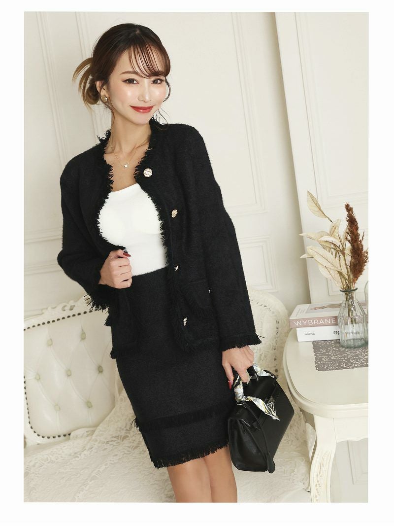 フリンジデザインモヘア調長袖ニットレディーススーツ【Belsia】