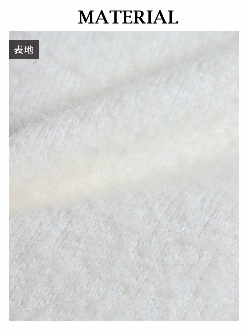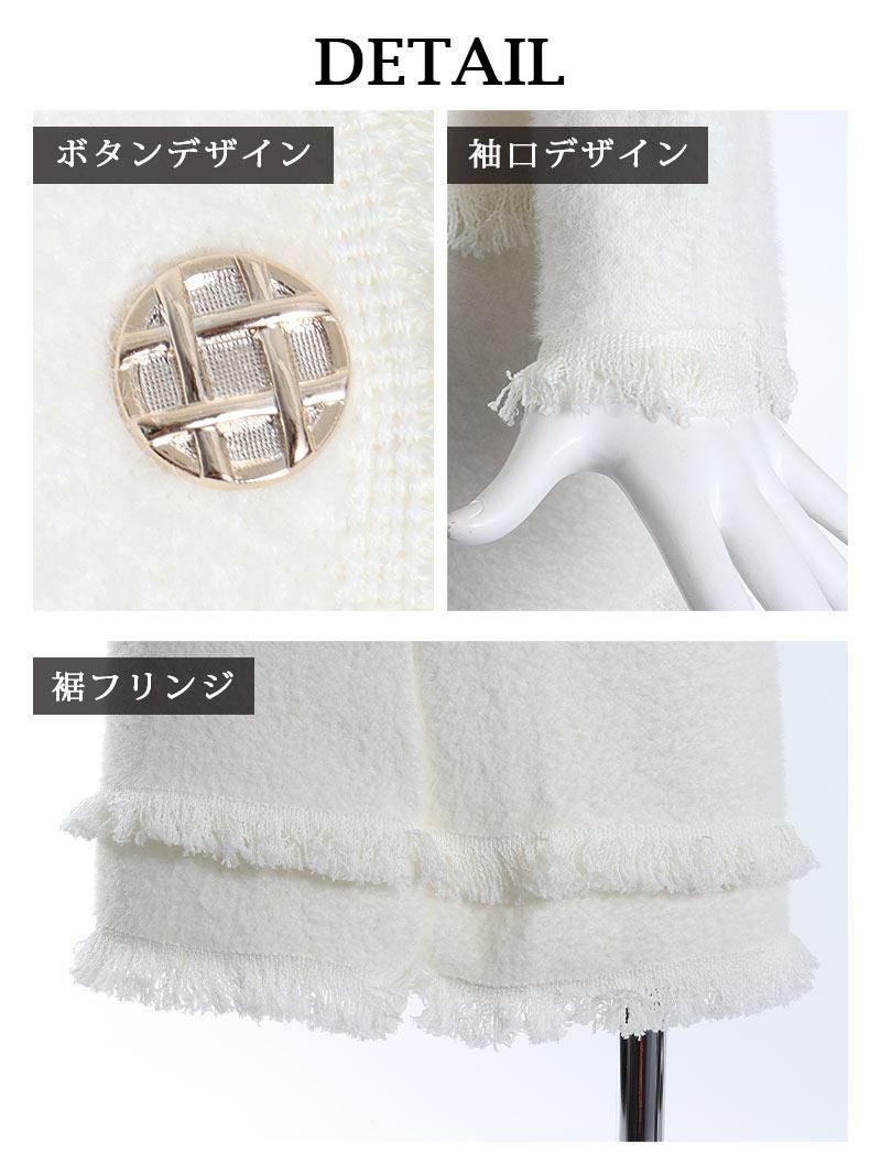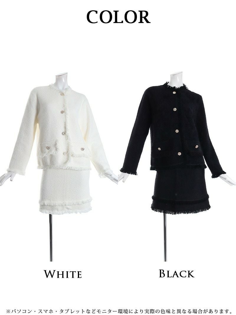 大人ガーリーな雰囲気が男ウケ抜群! フリンジデザインモヘア調長袖ニットレディーススーツ【Belsia】(M)(ブラック/ホワイト)