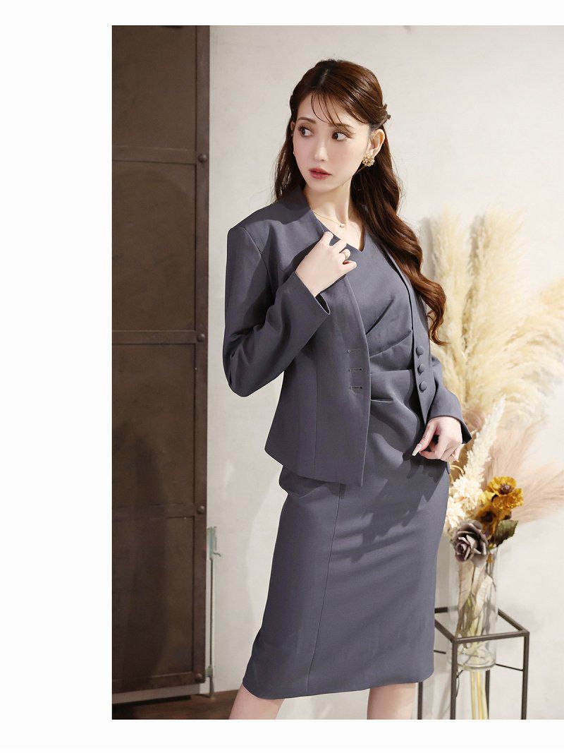 洗練されたスタイリッシュな印象を演出するグレーカラーのレディーススーツはキャバクラ/ラウンジ/スナックなどのお仕事で活躍するナイトスーツとしてはもちろん!