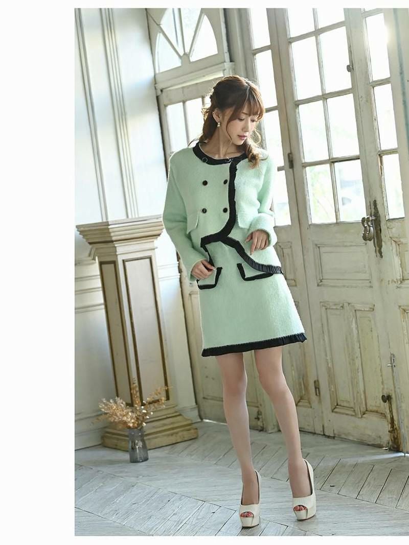 4. ダブルボタンニットセットアップスーツ 加賀美早紀 着用キャバスーツ【Belsia】(M)(ブラック/ホワイト/グリーン)