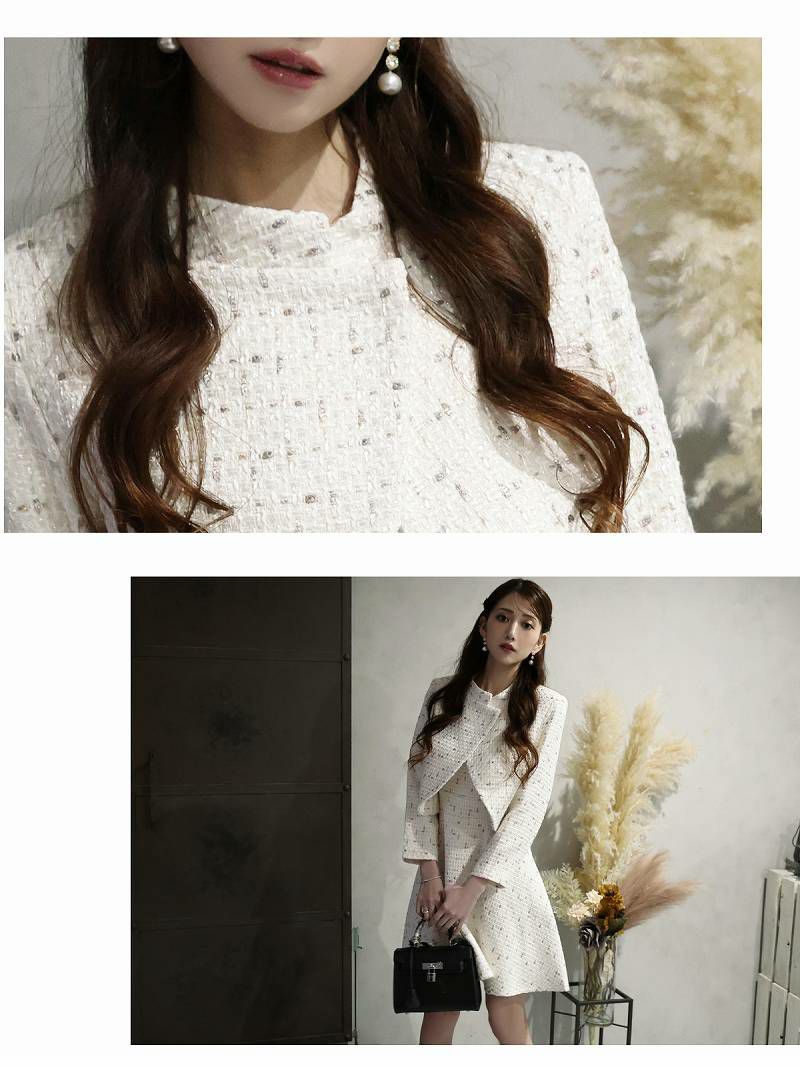 白ツイード膝丈フレアワンピーススーツ 加賀美早紀 着用キャバスーツ【Belsia】