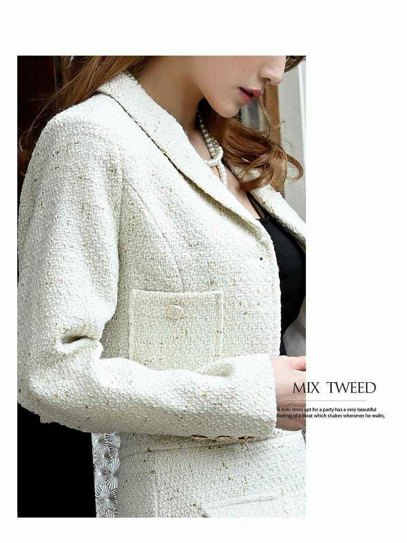 5. MIXツイードショート丈ジャケットキャバスーツ 加賀美早紀 着用レディーススーツ【Belsia】(S/M/L)(ブラック/アイボリー)