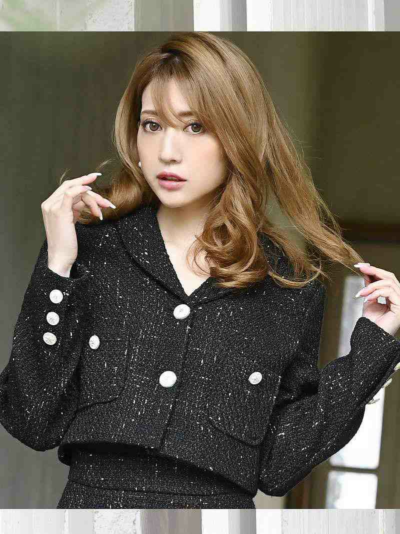 7. MIXツイードショート丈ジャケットキャバスーツ 加賀美早紀 着用レディーススーツ【Belsia】(S/M/L)(ブラック/アイボリー)