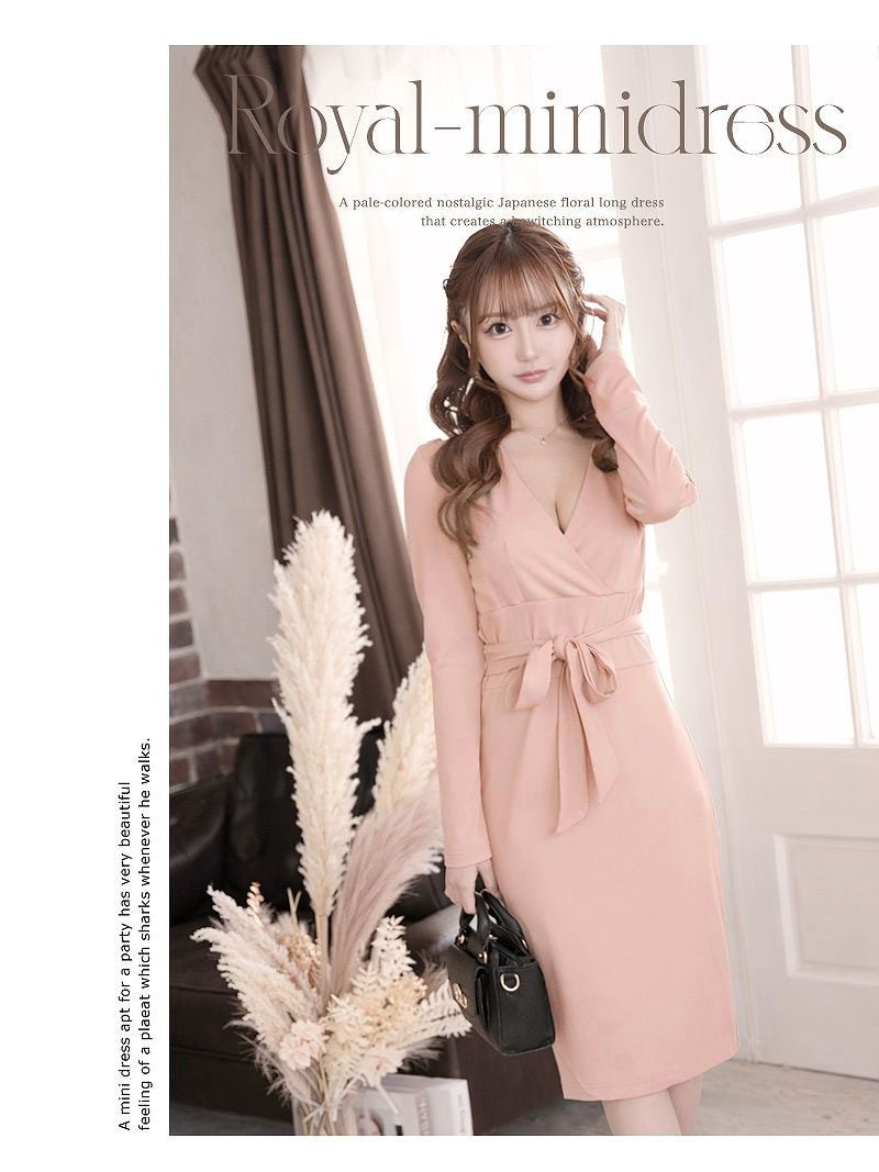 ウエストリボンで魅せる、上品さとスタイルアップを両立したカシュクール膝丈ワンピース。 先行予約割¥4280→¥4065!※一部予約販売※ウエストリボンでスタイルアップが叶うカシュクールデザインの膝丈タイト長袖ワンピース りせり 着用 キャバドレス【RyuyuChick】(S/M/L/XL(2L)/XXL(3L))(ブラック/ターコイズ/レッド/ベージュ)