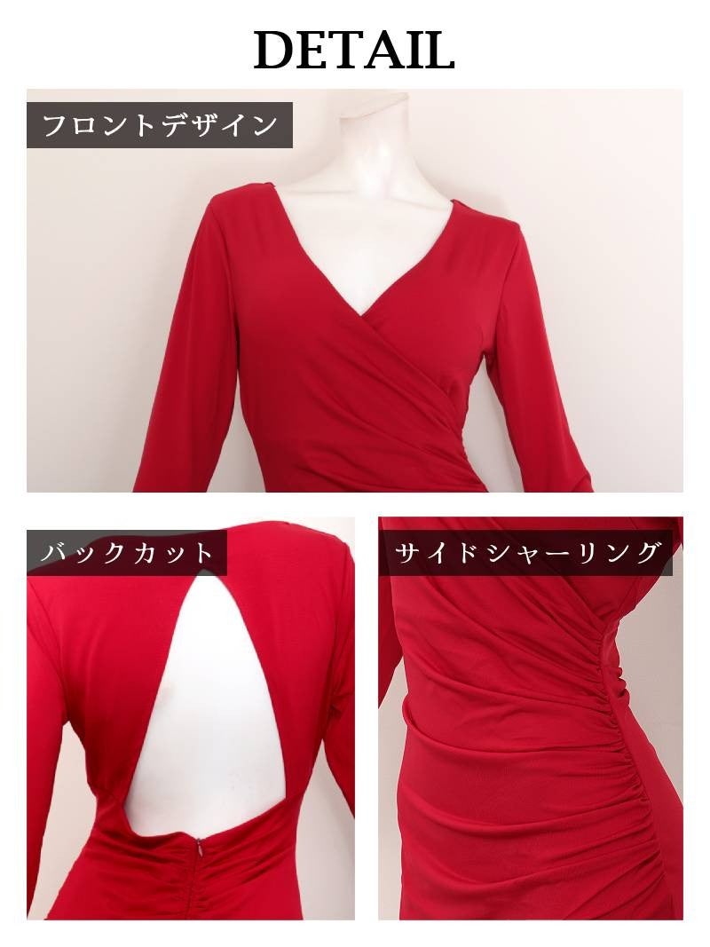 計算されたドレープと深Vラインで、大人の色香を最大限に引き出す魅惑のタイトドレス。 先行予約割¥3980→¥3781!※一部予約販売※深Vネックカシュクール七分袖タイトワンピース ドレープデザイン膝丈キャバドレス りせり 着用 キャバドレス【RyuyuChick】(S/M/L/XL(2L)/XXL(3L))(グリーン/ブラック/ワイン/パープル/ブルー)