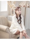 パールとラメが織りなす上品な輝きで魅了するドール風ツイードワンピース。 先行予約割¥7280→¥6916!※一部予約販売※上品なラメツイードにパールパイピングを施した二の腕カバーも叶うドール風ミニドレス 【Ryuyu】(S/M/L/XL(2L))(ホワイト)