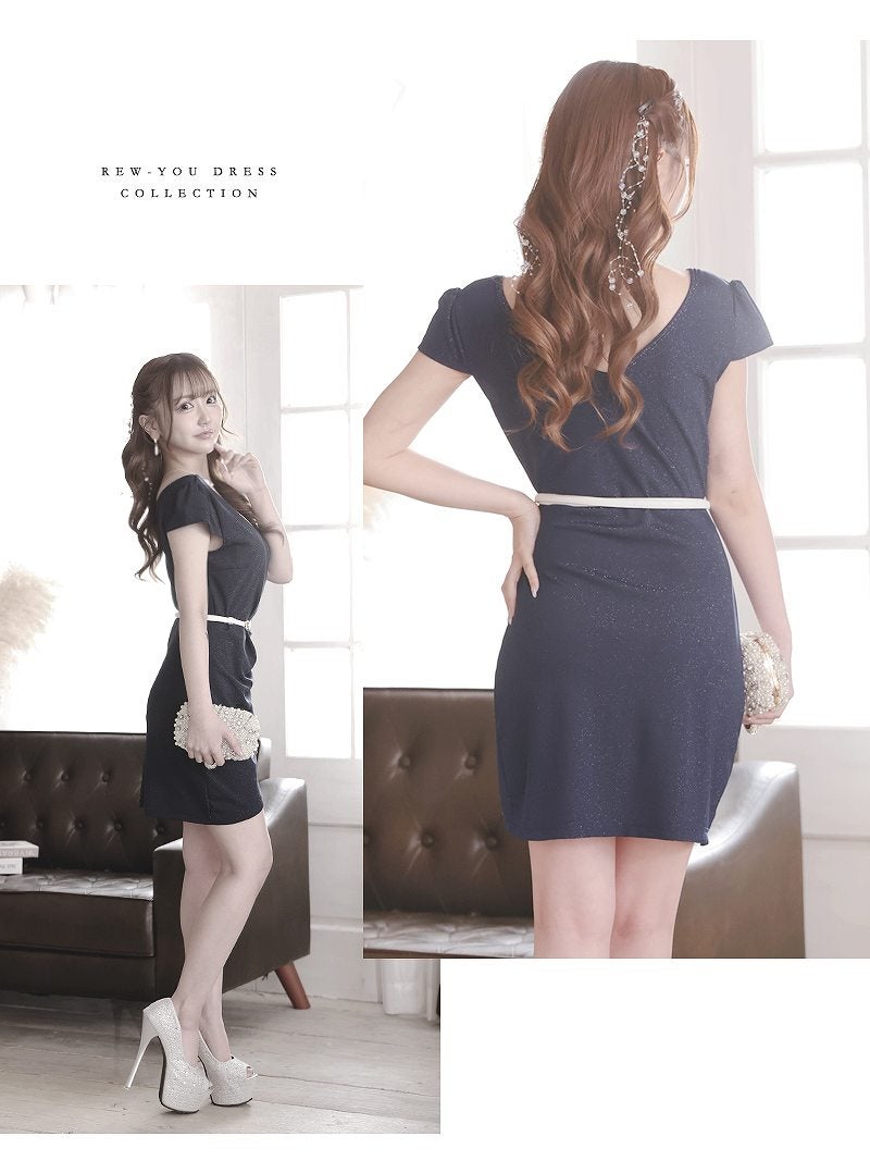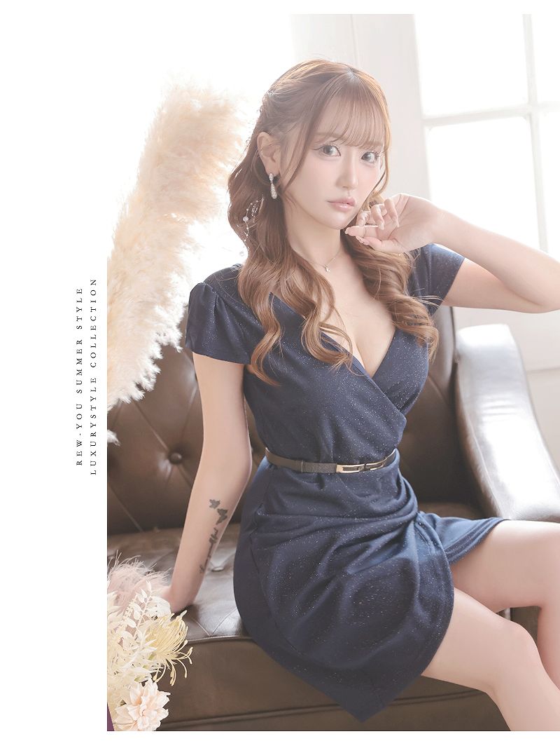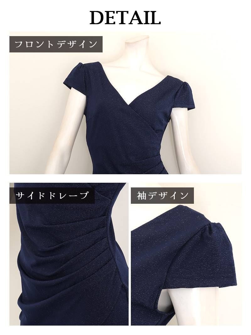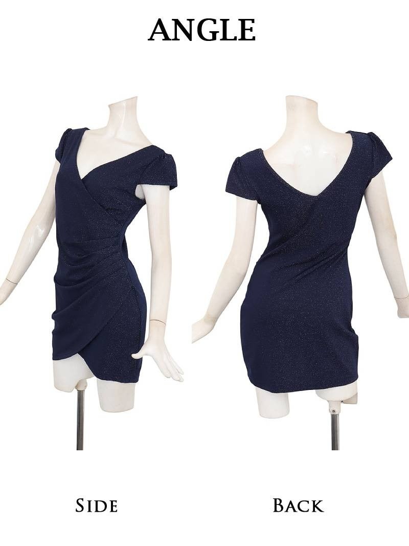 ラメの煌めきと細見せシルエットで、周囲を虜にする大人のタイトドレス。 きらきらラメ入り素材のストレッチが効いたカシュクール風袖付きタイトミニドレス りせり 着用 キャバドレス【RyuyuChick】(S/M/L/XL(2L)/XXL(3L)/XXXL(4L))(ネイビー/レッド/ブラック)