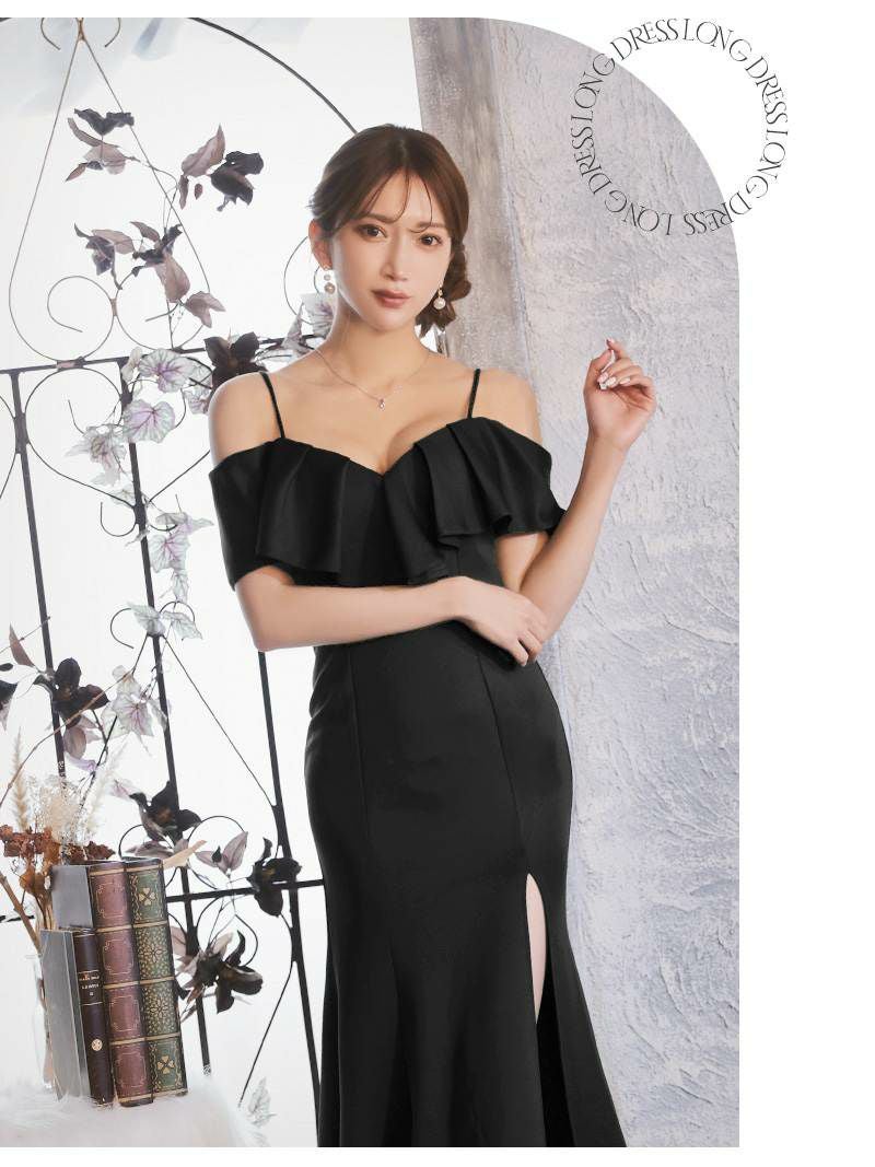 オープンショルダー漆黒ロング韓国キャバワンピKANO着用ラウンジワンピース【DAYS PIECE】(S/M/L/XL(2L)/XXL(3L))(ブラック) ptpl