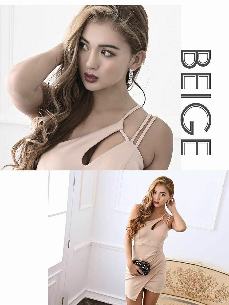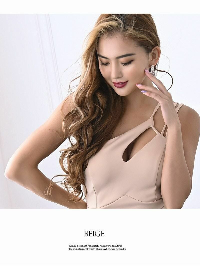 デコルテから色気を放つ、失敗知らずの万能キャバドレス ワンショルアシンメトリーミニドレス【RyuyuChick】(S/M/L)(ワイン/ブラック/ベージュ/ホワイト/ブルー)