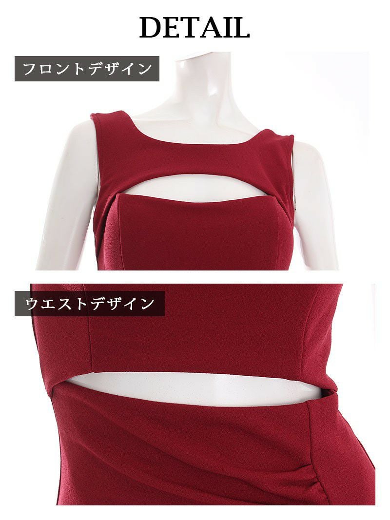 5. お腹魅せカッティングノースリーブワンカラーキャバワンピース りおん 着用キャバクラドレス【RyuyuChick】(M/L)(ワイン)