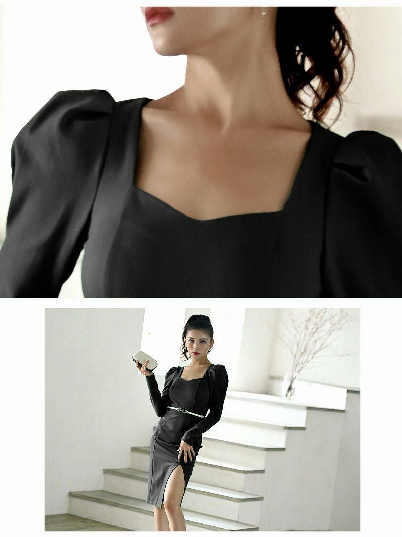 3. パワーショルダー長袖無地韓国キャバワンピース【DAYS PIECE】(S/M/L/XL(2L))(ブラック) ptpl