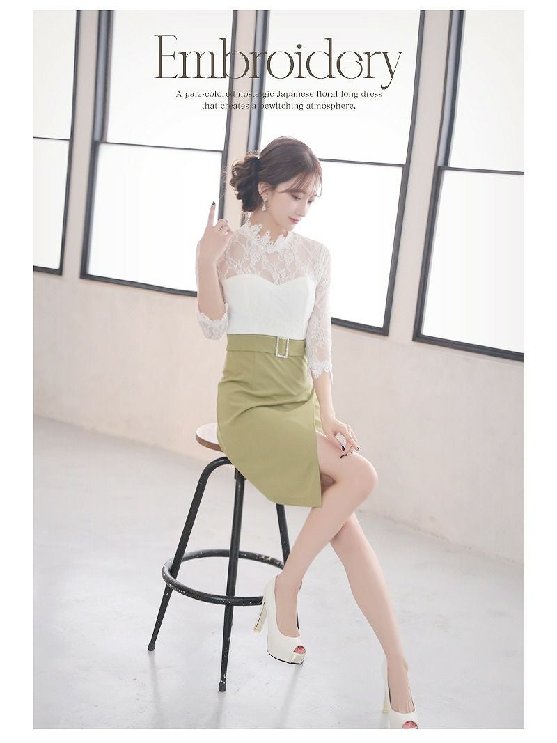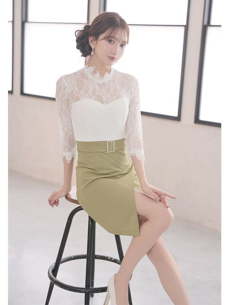 レースバイカラーハイネックミニドレス【Ryuyu】
