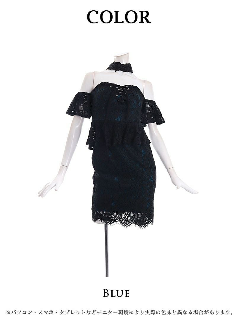 エロさ溢れる体型カバードレス ブラックレースペプラムデザインタイトキャバドレス 武田静加 加賀美早紀 着用 キャバドレス【Belsia】(S/M/L)(ブルー) ptpl