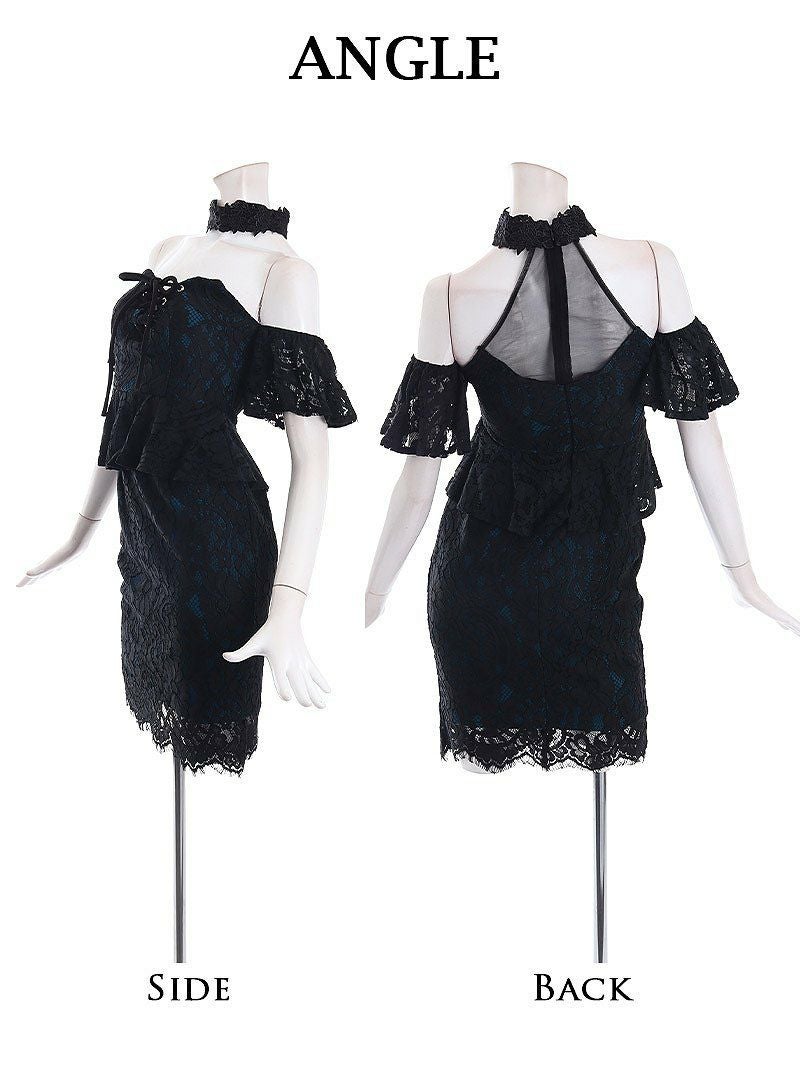 4. ブラックレースペプラムデザインタイトキャバドレス 武田静加 加賀美早紀 着用 キャバドレス【Belsia】(S/M/L)(ブルー) ptpl