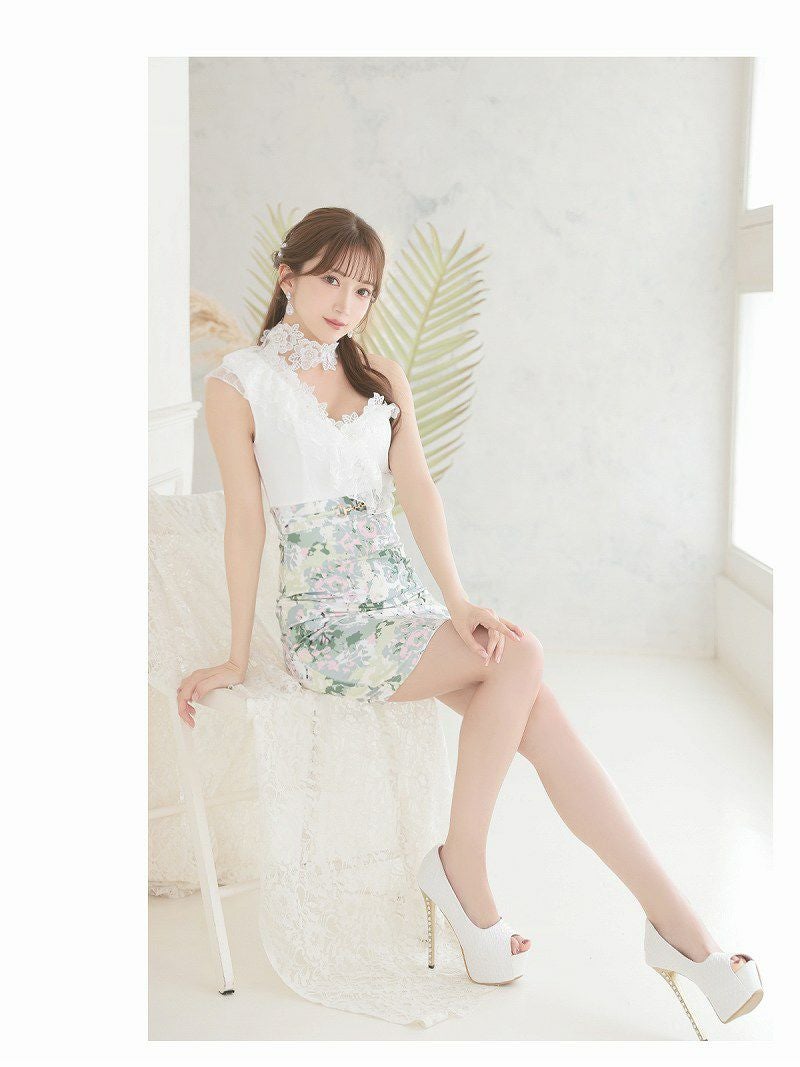 6. 立体レースワンショルダータイトキャバドレス【Ryuyu】(XS/S/M/L)(ホワイト)