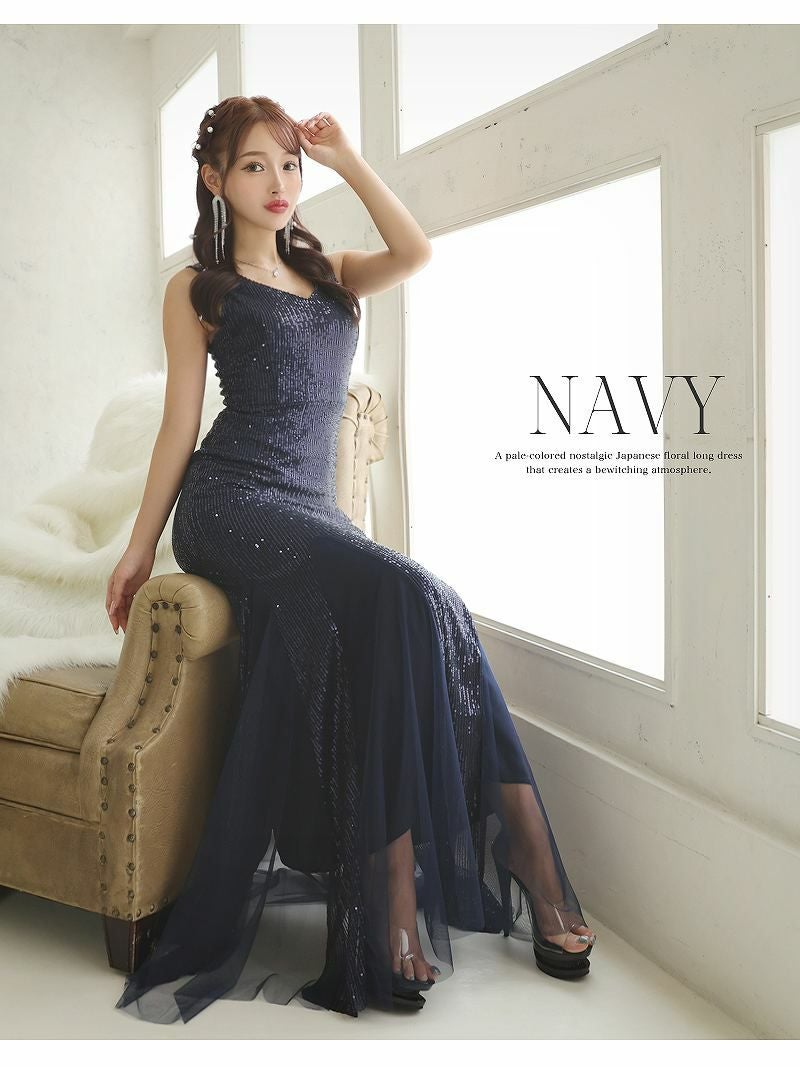 4. マーメイドライン総スパンコールロングドレス【Ryuyu】(M/L)(ワイン/ネイビー/ピンクゴールド) ptpl