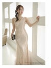 キラキラの総スパンコールが気に入ったので今回購入されていただきました! 届いたドレスは想像通りの豪華でしっかり映える素敵なドレスでした♥ マーメイドラインが体のラインを綺麗に見せてくれて 透け感のありチュール裾も歩くたびにひらひらして可愛いです>< お値段以上の高級感があって大満足です♥