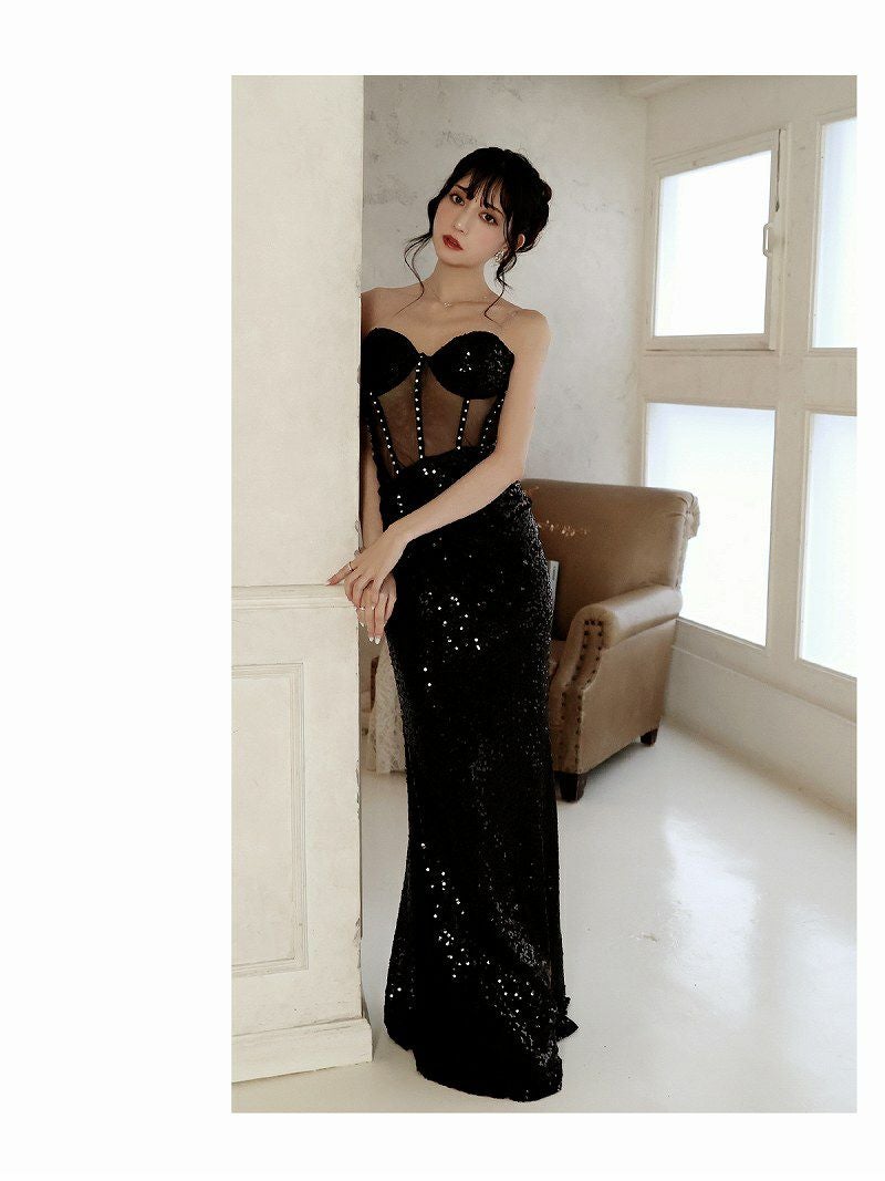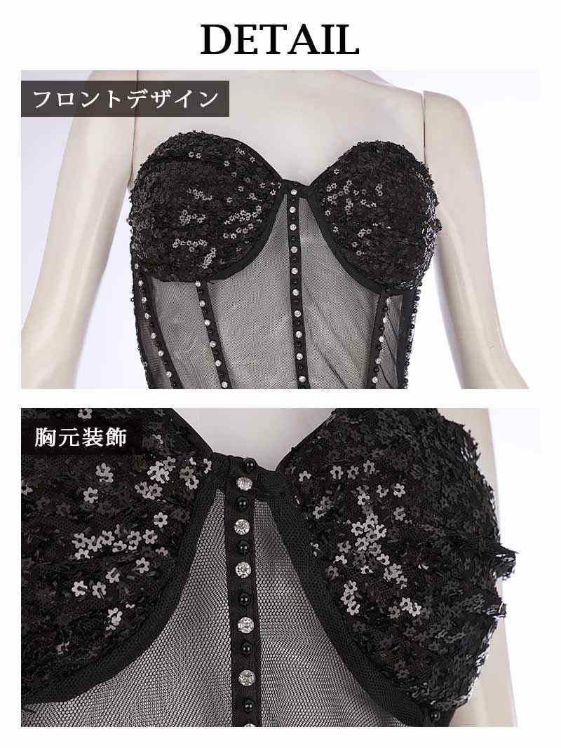 圧倒的なエロさと華やかさを演出 ブラックシアーコルセット風インポートロングドレス 加賀美早紀 着用キャバドレス【BelsiaLUX】(M/L)(ブラック)