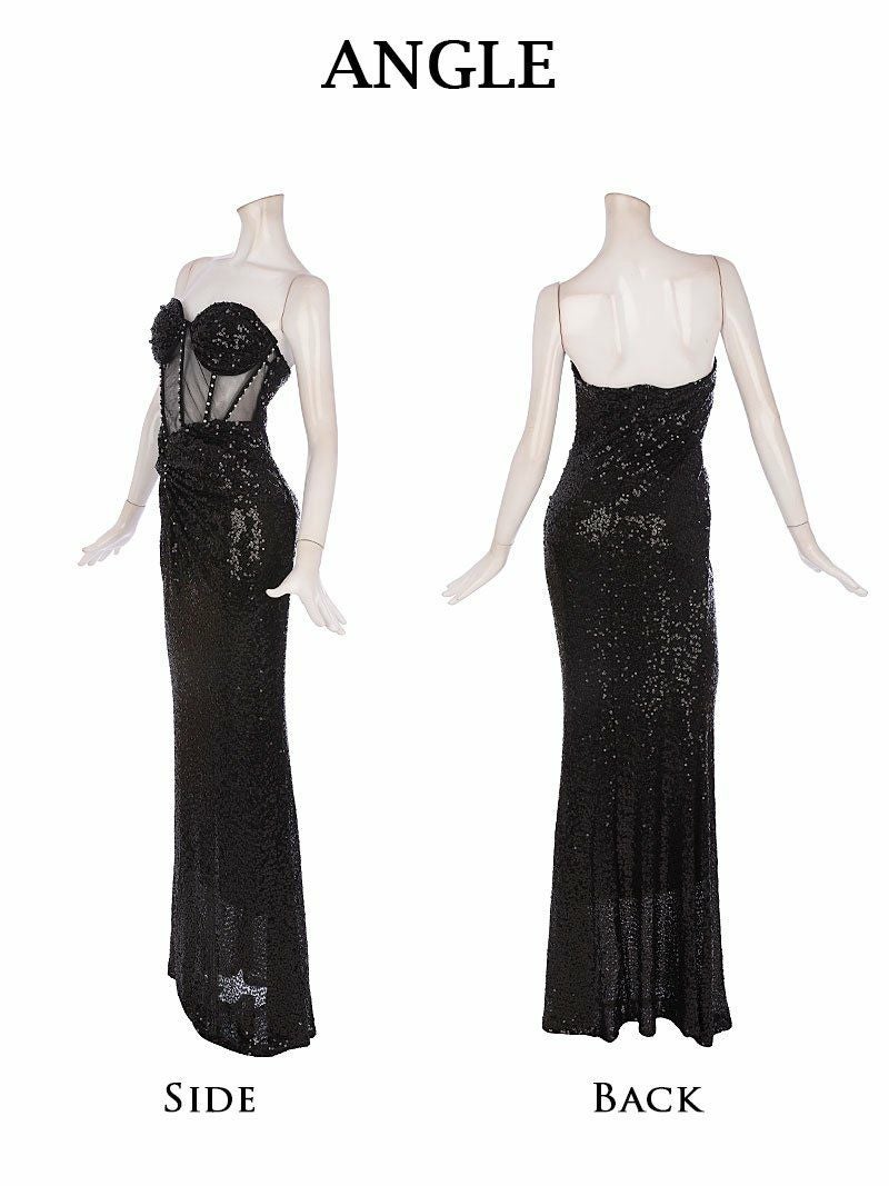 4. ブラックシアーコルセット風インポートロングドレス 加賀美早紀 着用キャバドレス【BelsiaLUX】(M/L)(ブラック)