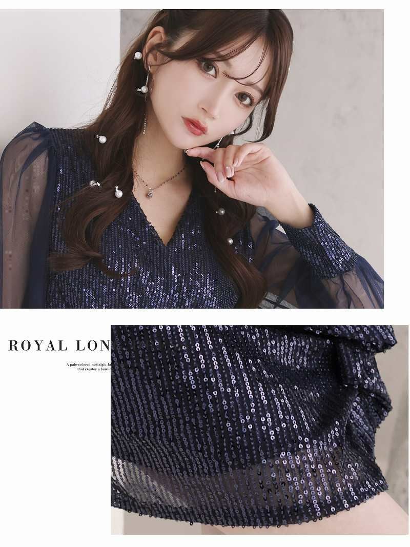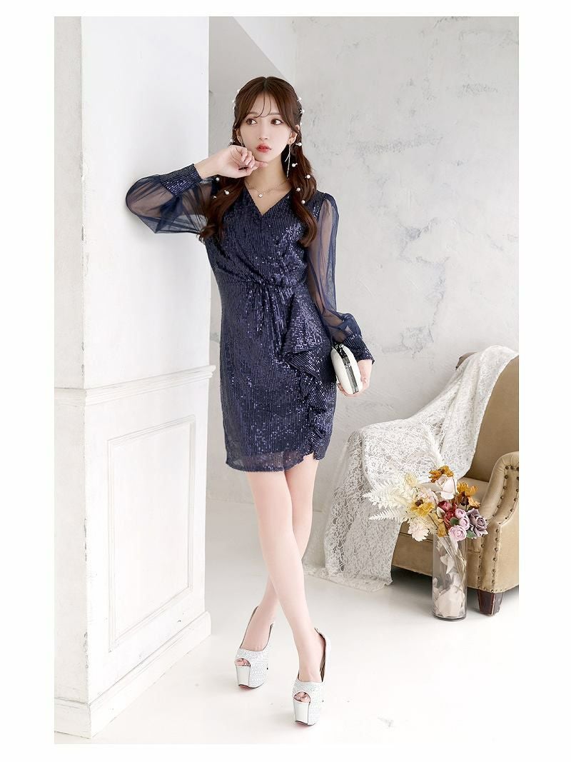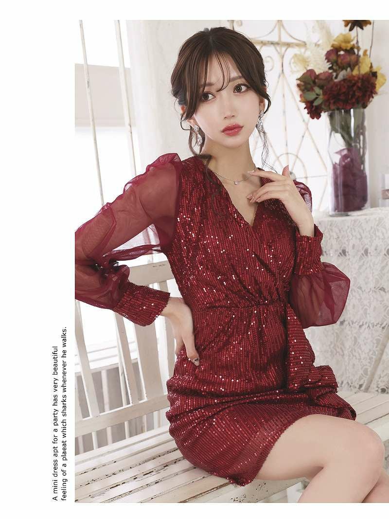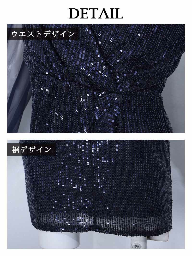 5. スパンコールシアー袖付きミニドレス【RyuyuChick】(M/L)(ネイビー/レッド)