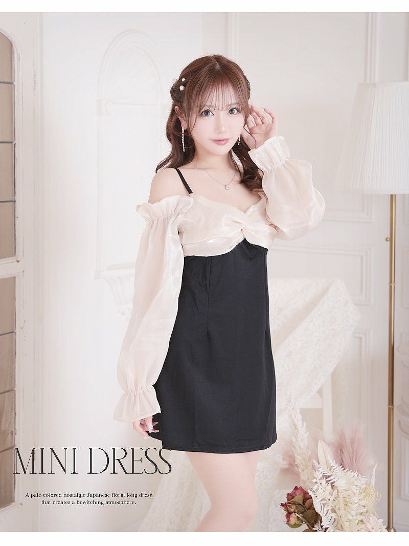 リボン風胸盛りオフショルミニドレス りせり 着用 キャバドレス【RyuyuChick】