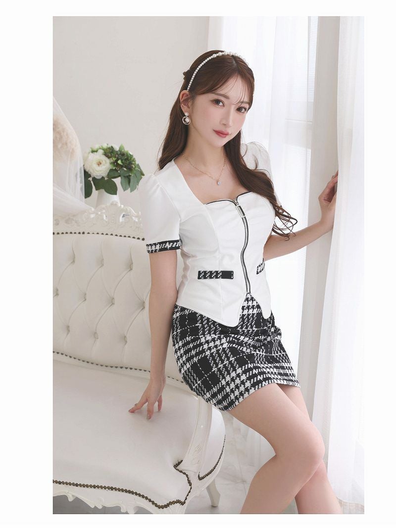 5. チェック×韓国風モノトーン袖付きセットアップドレス【Ryuyu】(S/M/L)(ホワイト/ブラック)