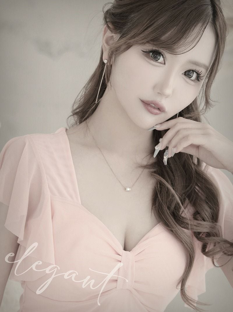 メッシュ×フリルフレアのコンビでガーリーさと甘さをしっかりアピールできるキャバクラドレスになっています。