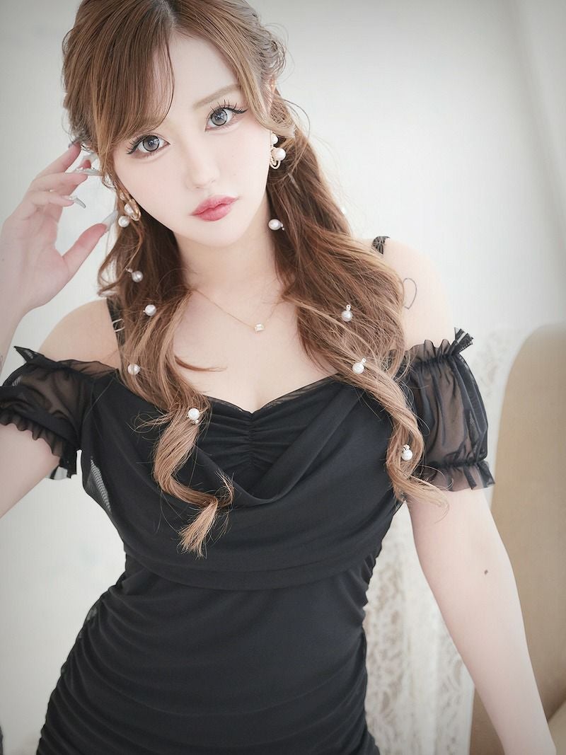 シアーオフショル×ドレープミニドレス りせり 着用 キャバドレス【RyuyuChick】