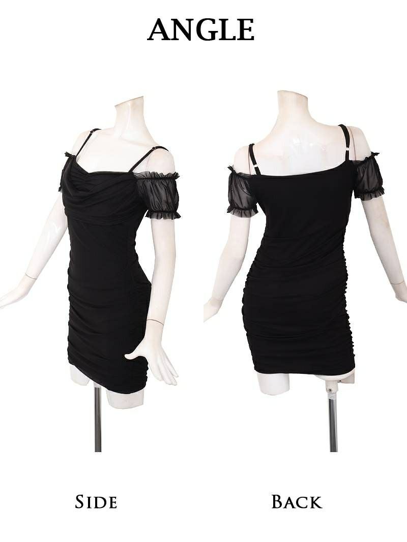 5. シアーオフショル×ドレープミニドレス りせり 着用 キャバドレス【RyuyuChick】(M/L)(ブラック/ホワイト/ピンク)