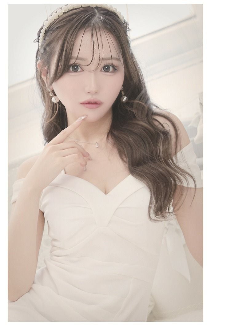 リボンオフショルエレガントロングドレス りせり 着用 キャバドレス【RyuyuChick】