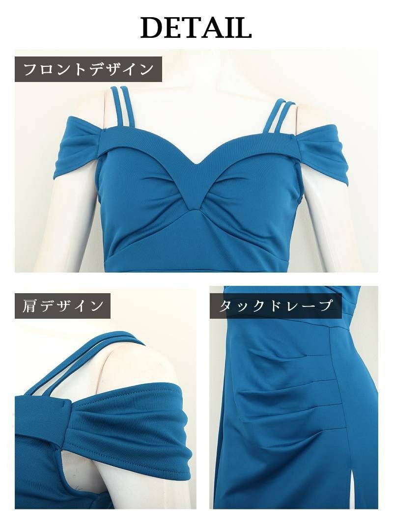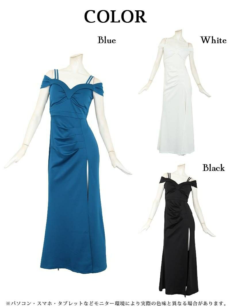 4. リボンオフショルエレガントロングドレス りせり 着用 キャバドレス【RyuyuChick】(S/M/L/XL(2L)/XXL(3L))(ブルー/ホワイト/ブラック)