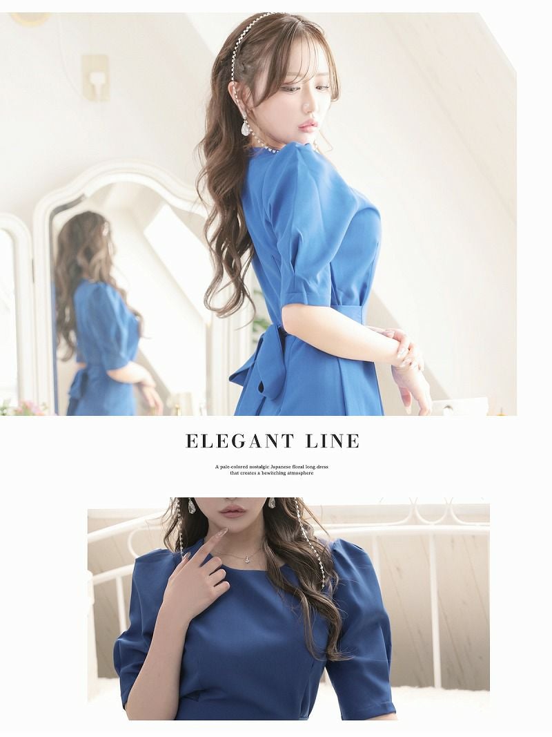 バックリボンタイト膝丈ブルーカラータイトキャバワンピース りせり 着用 キャバドレス【RyuyuChick】