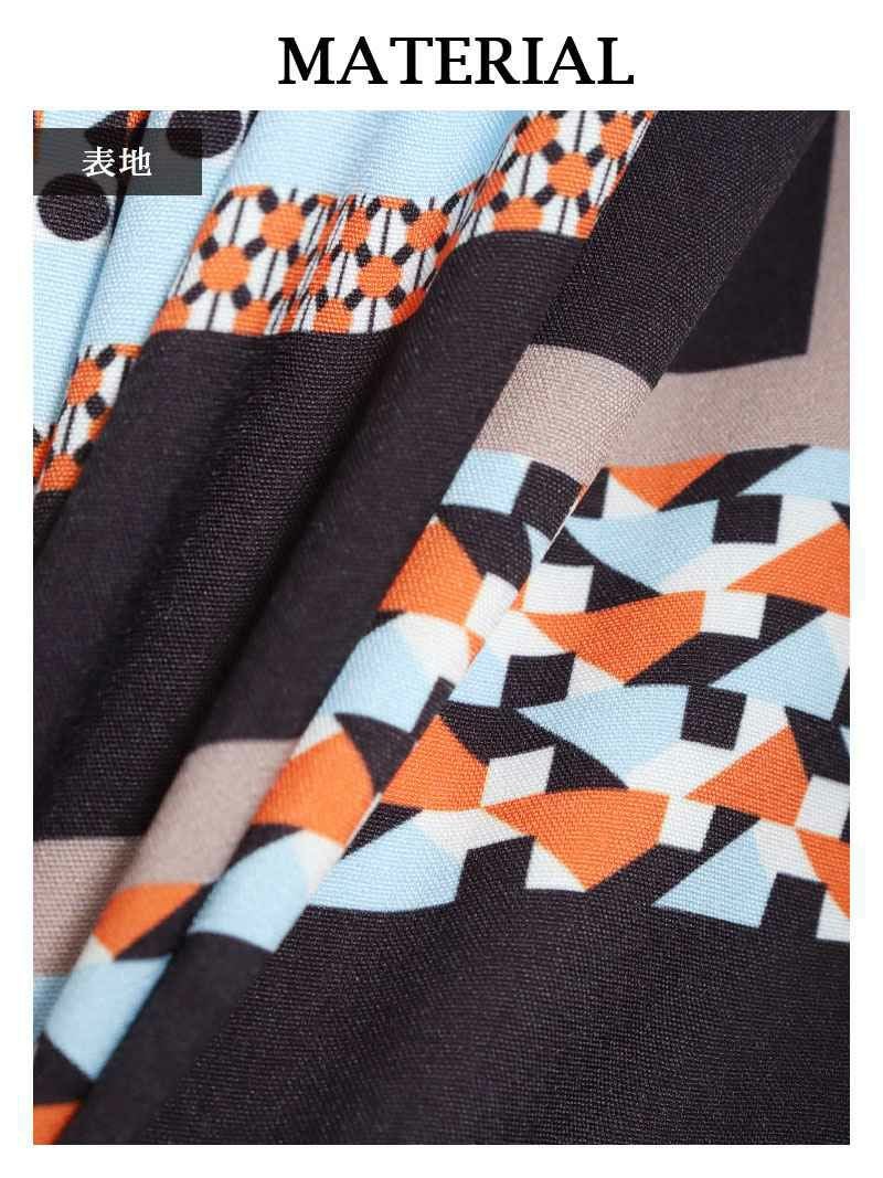 目を引くジオメトリック柄がレトロで上品な雰囲気を演出する韓国ロングワンピース!