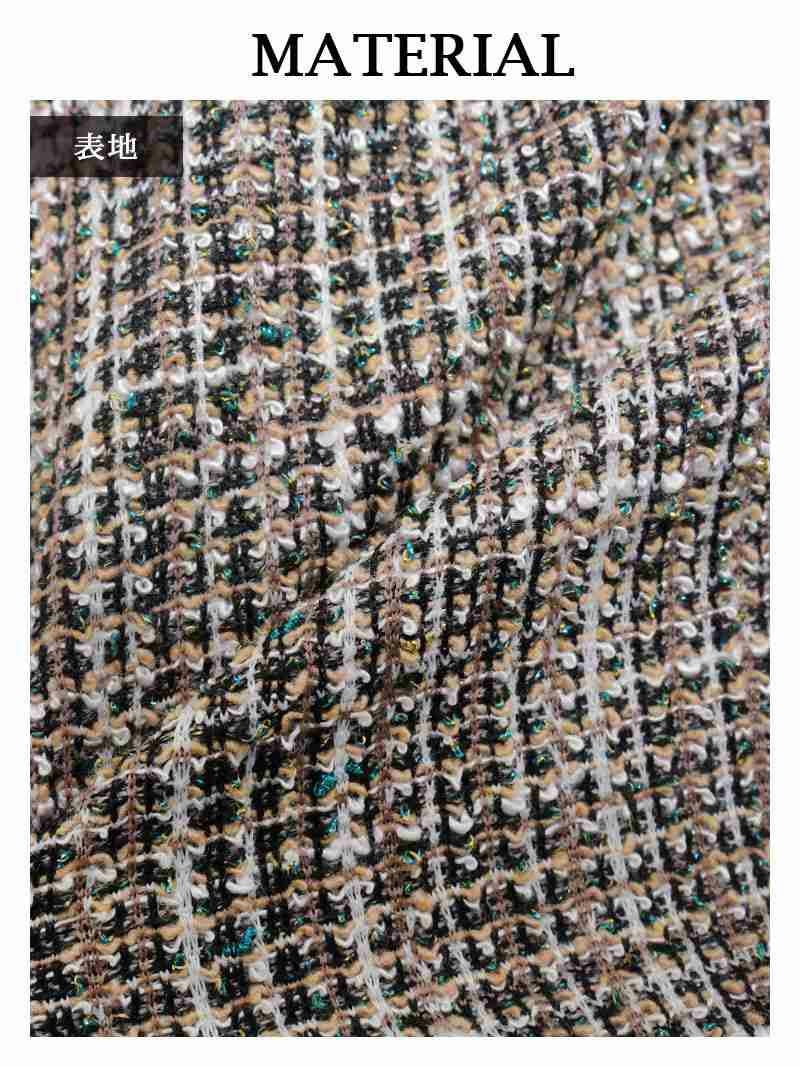 落ち着いた色味のミックスツイードが大人っぽさを引き立てるミニドレスです。