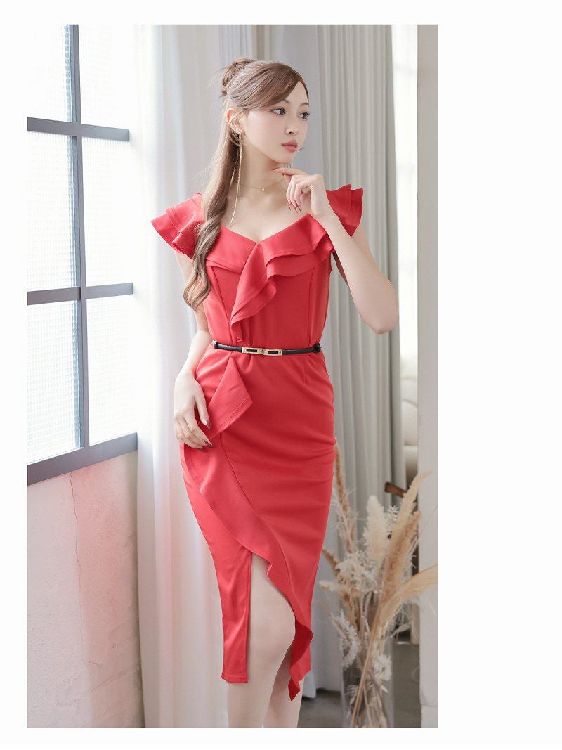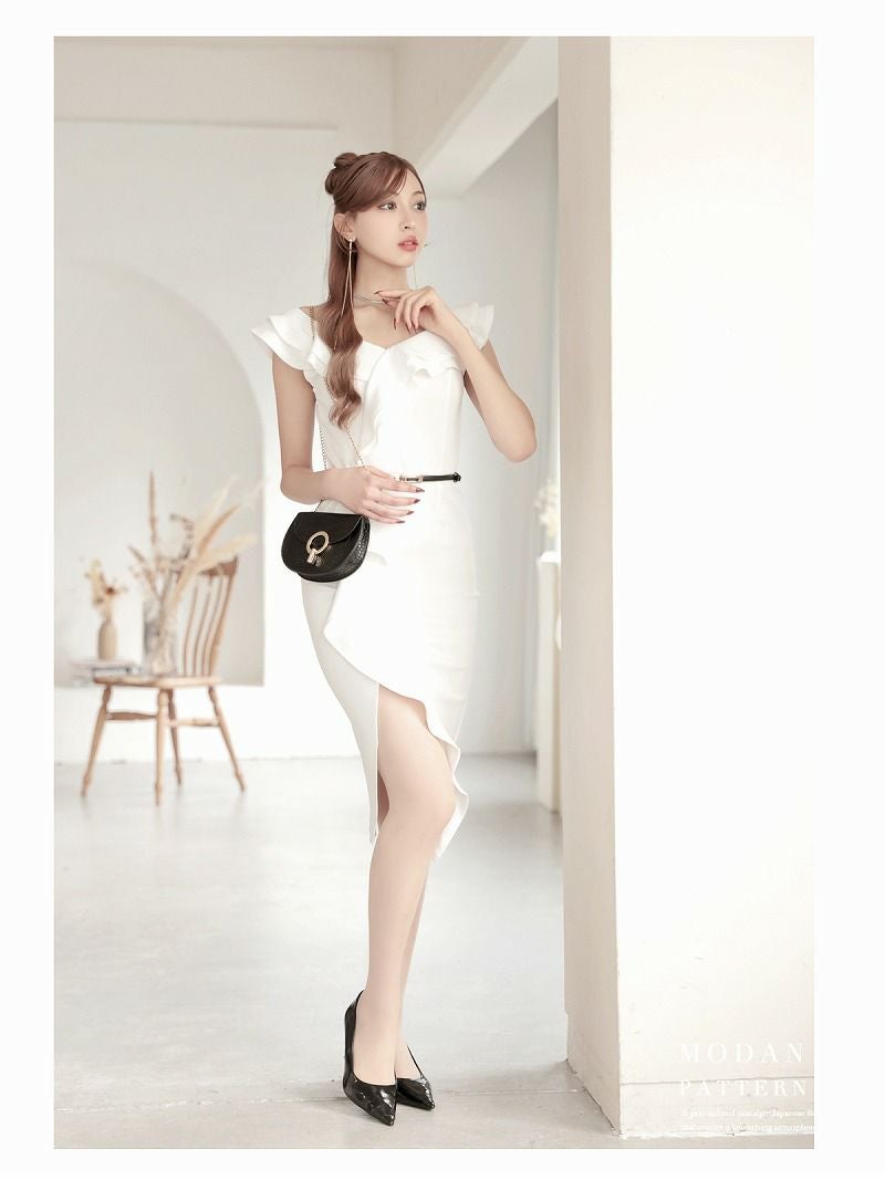 大きめフリルで小顔効果も狙えるカシュクールボトルラインワンピース 韓国style セレブキャバドレス【DaysPiece】