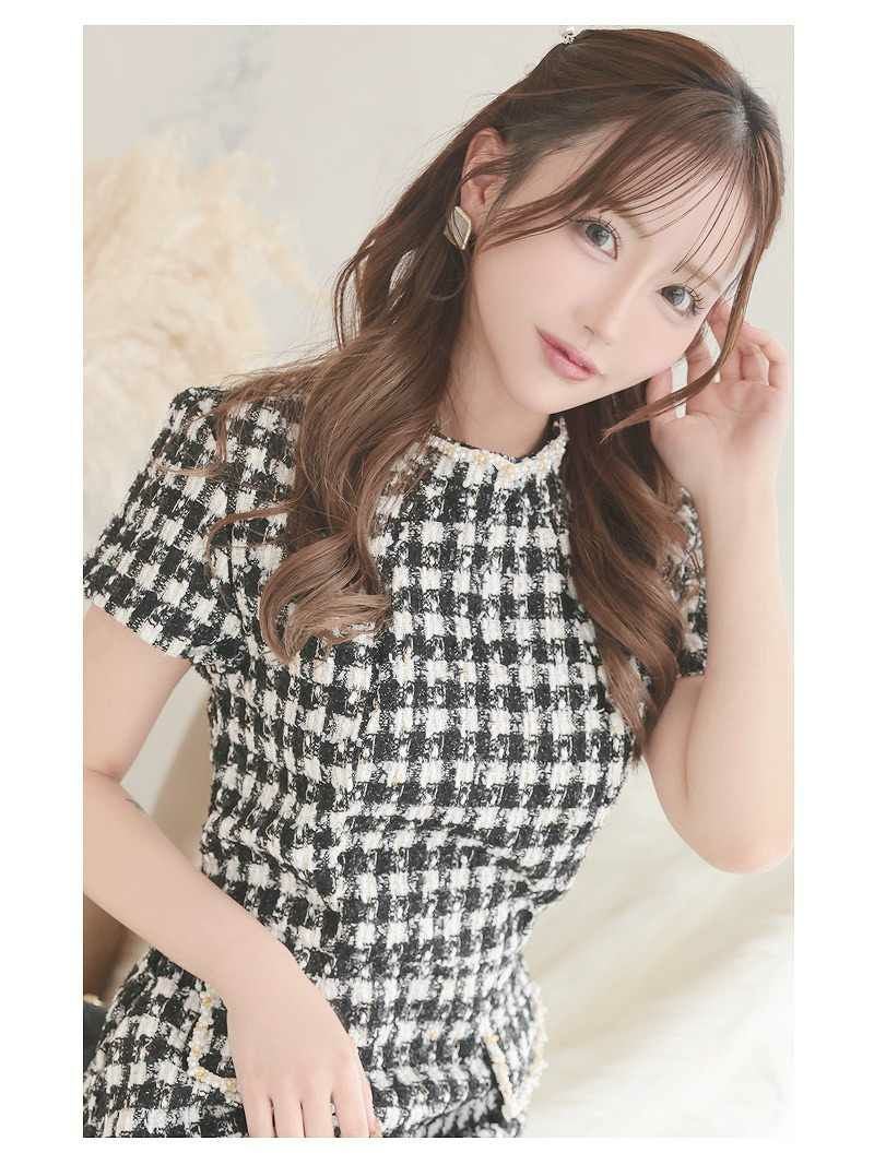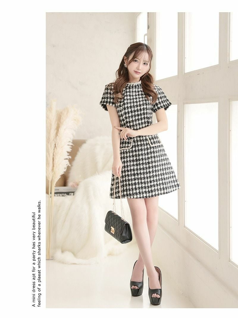 厚手ツイードとパールの煌めきで、最旬の韓国風お嬢様スタイルを叶えるドールワンピース。 先行予約割¥4980→¥4731!※一部予約販売※厚手ツイードパールパイピング袖付きチェック柄ドールワンピース 【RyuyuChick】(S/M/L/XL(2L))(ブラック)