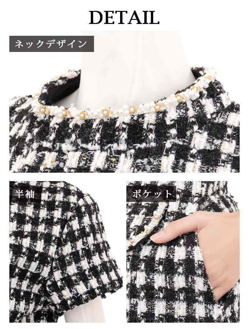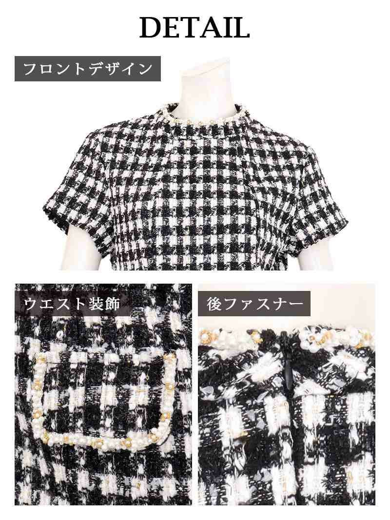 4. 先行予約割¥4980→¥4731!※一部予約販売※厚手ツイードパールパイピング袖付きチェック柄ドールワンピース 【RyuyuChick】(S/M/L/XL(2L))(ブラック)