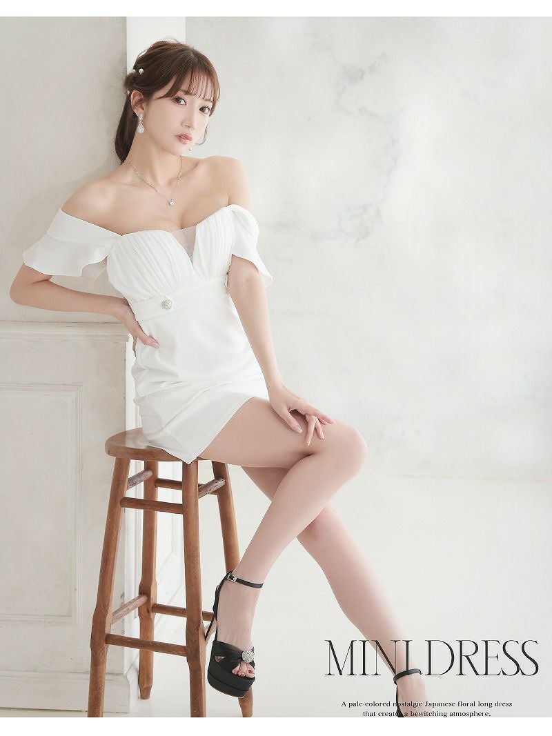 着るだけで盛れる!可愛さもスタイルも両取りドレス 先行予約割¥2990→¥2841!※一部予約販売※大人可愛いオフショルセクシーミニドレス あいさ 着用 キャバドレス【RyuyuChick】(S/M/L)(ホワイト/ブラック/ワイン/グリーン)