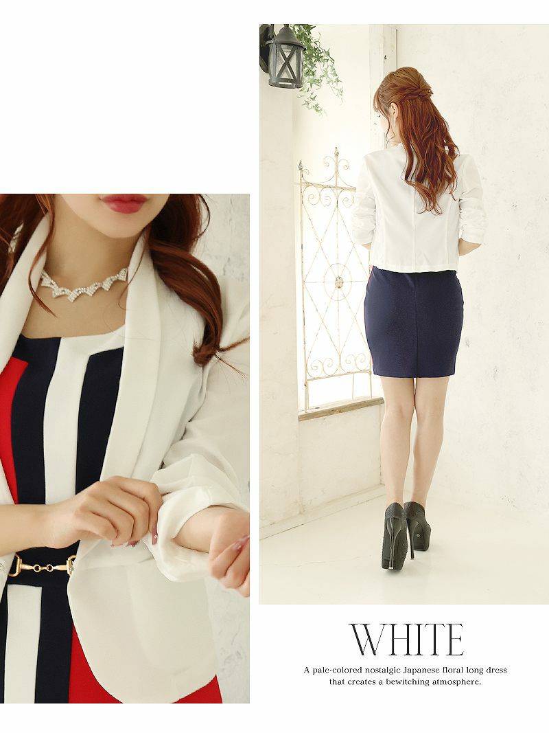配色ワンピが高級感ありセットアップ ジャケット付き派手柄タイトワンピースキャバスーツ【Ryuyu】(S/M/L/XL)(ホワイト/ブラック)