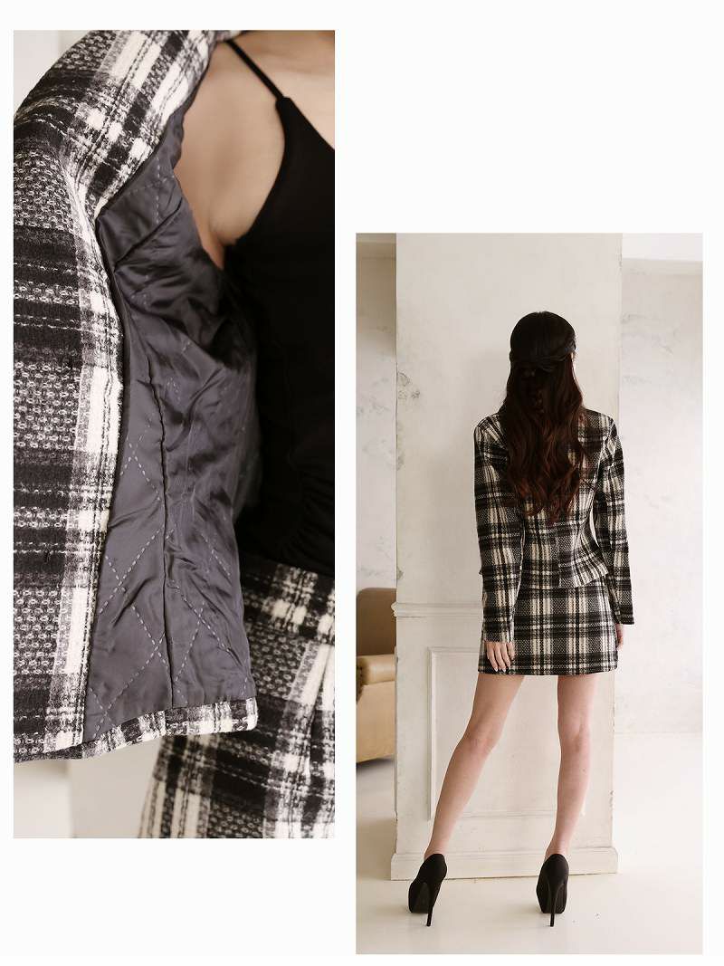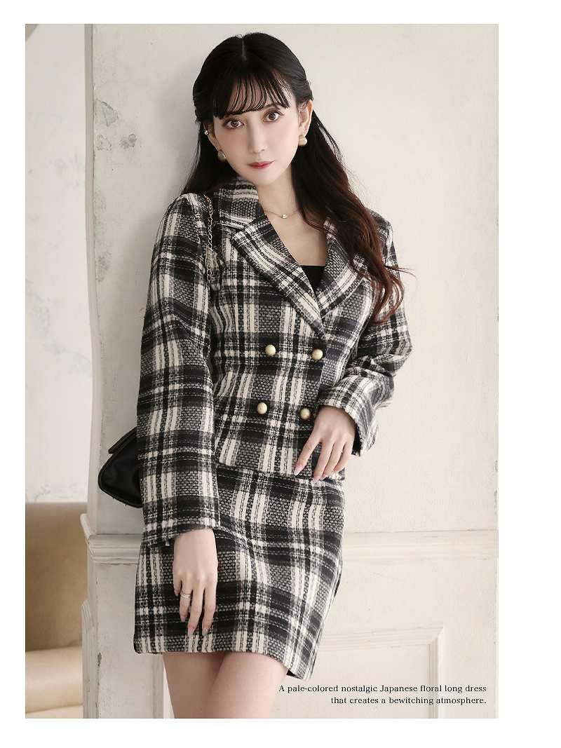 チェック柄起毛ツイードキャバスーツ 加賀美早紀 着用中綿ナイトスーツ【BelsiaLUX】