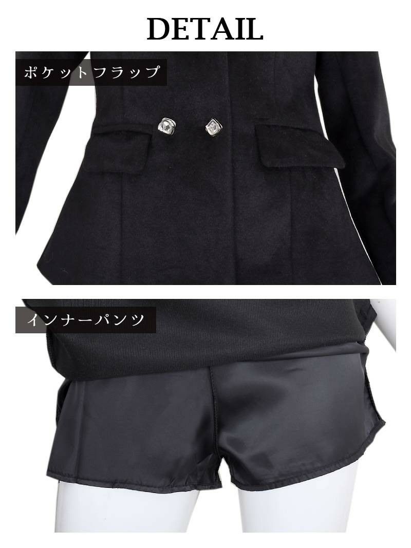 袖ファー付きフォーマルミニ丈レディーススーツ 武田静加 キャバスーツ【Belsia】