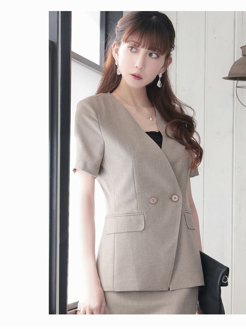 6. スーパーSALE¥12800→¥10239! エレガントシンプルデザイン半袖キャバスーツ 加賀美早紀 着用 キャバスーツ【Belsia】(S/M/L/XL(2L)/XXL(3L))(グレー/ベージュ)
